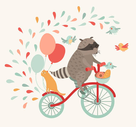 バイクでツーリングをするトリ イヌ ネコ タコ ウサギのイラスト素材